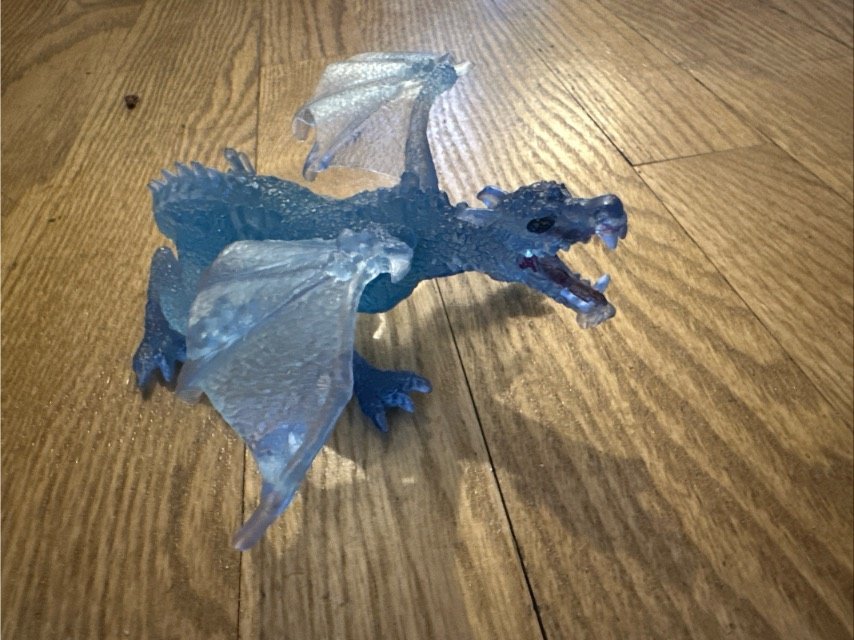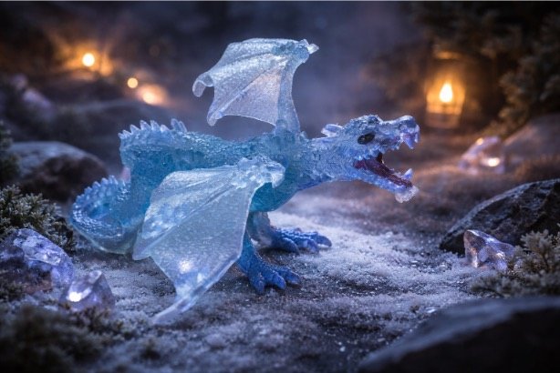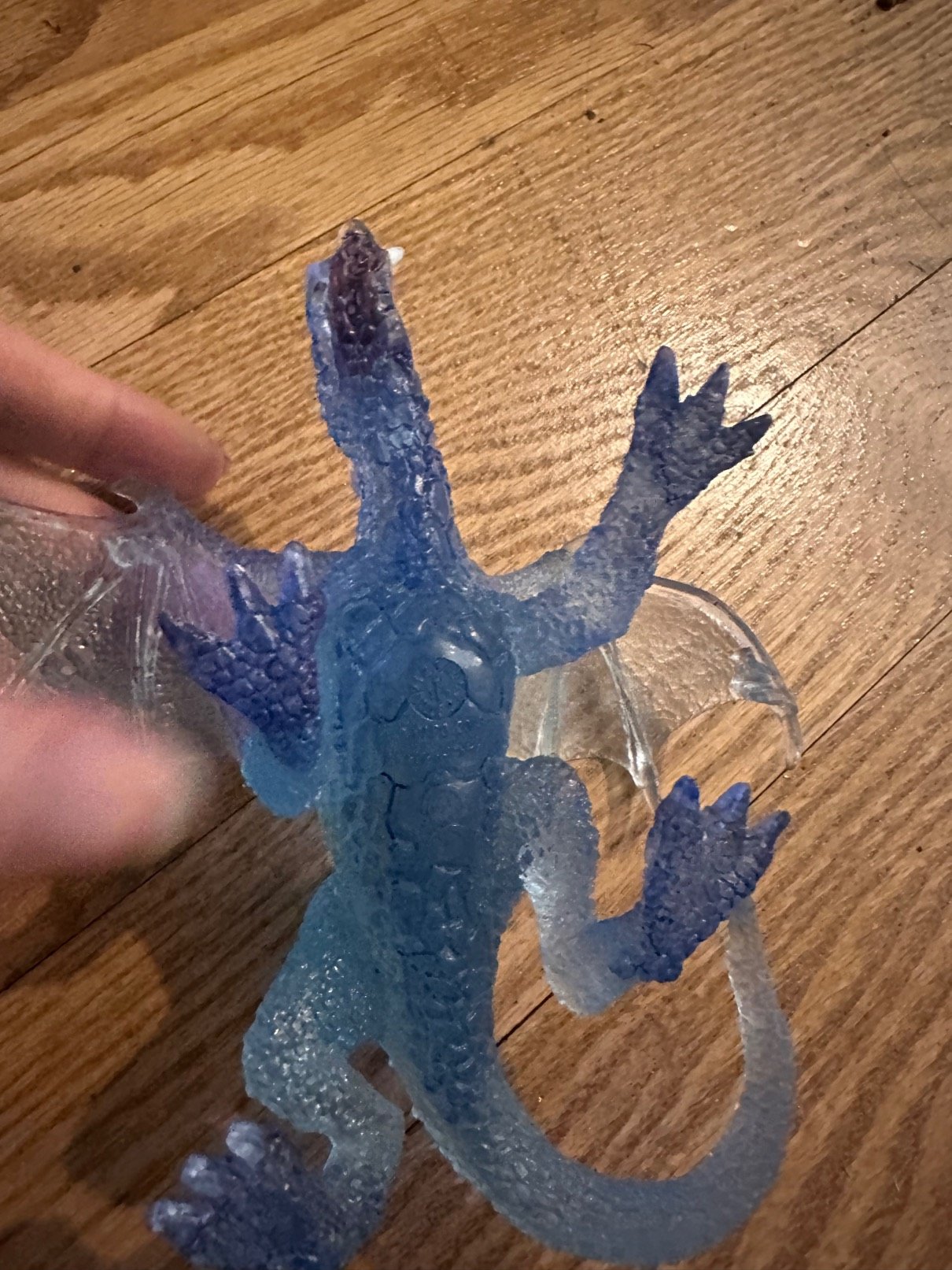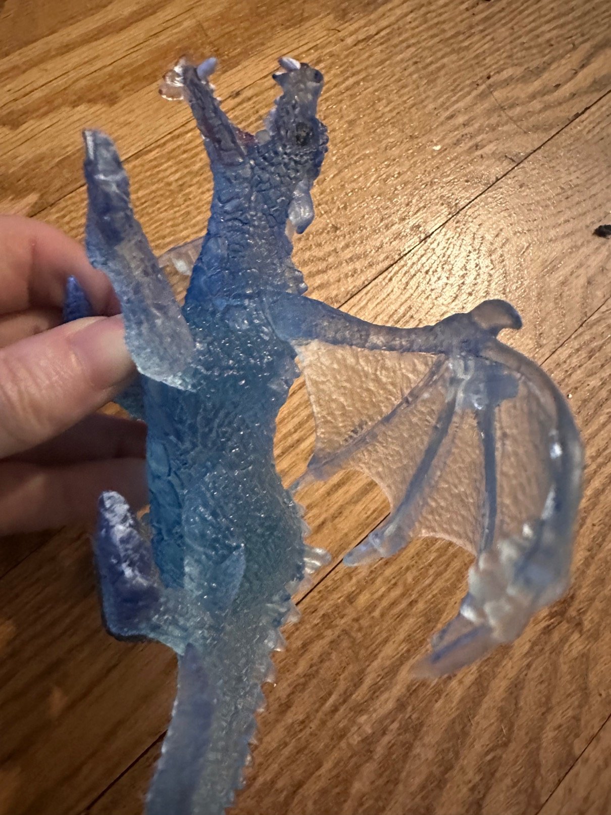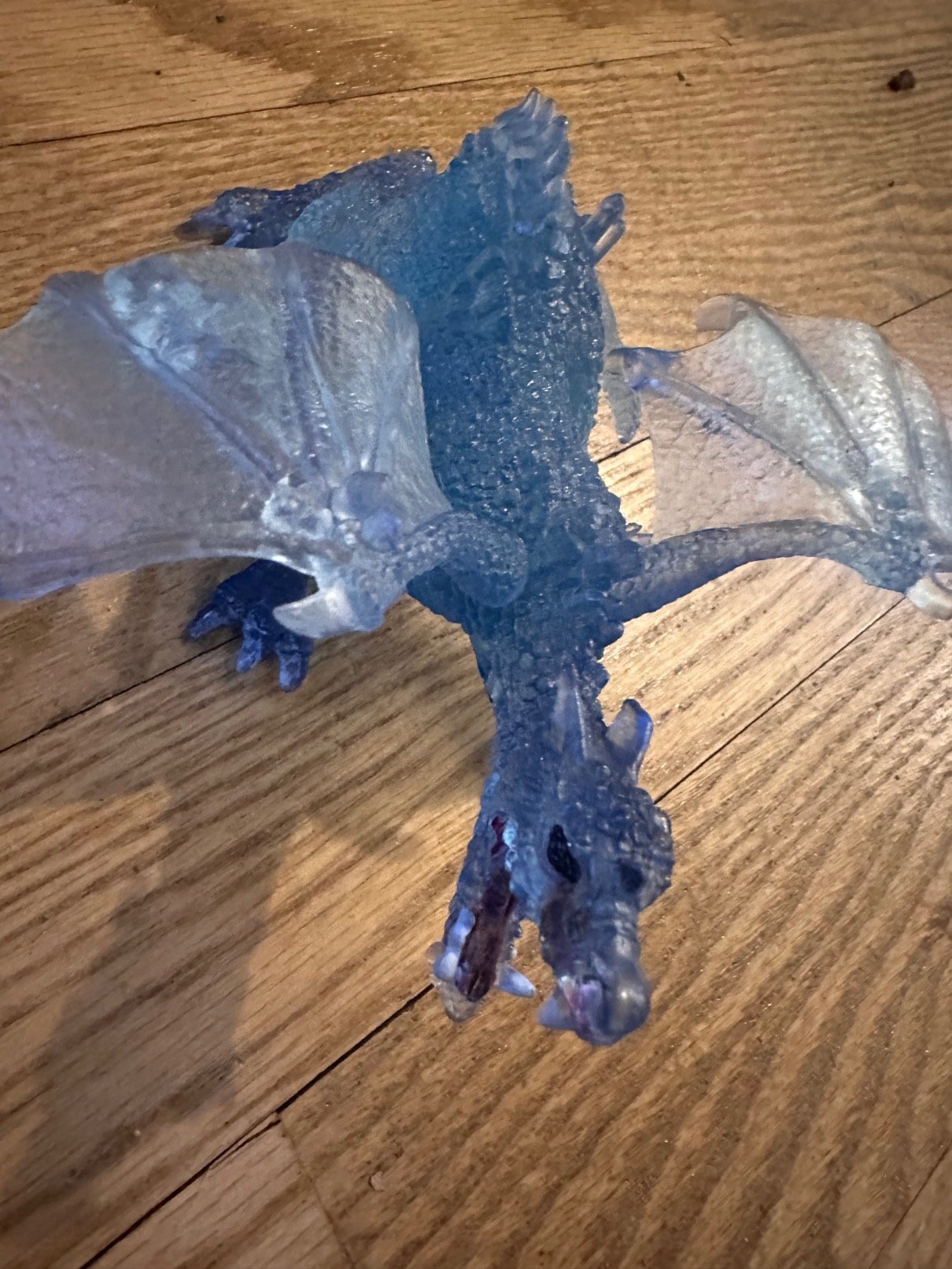 2013 Papo Ice Dragon figure with translucent blue wings. Medieval fantasy collectible with detailed sculpt.