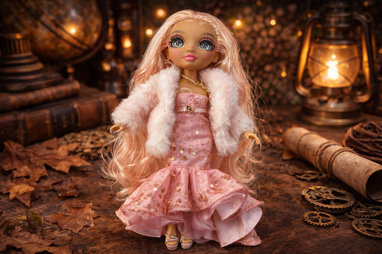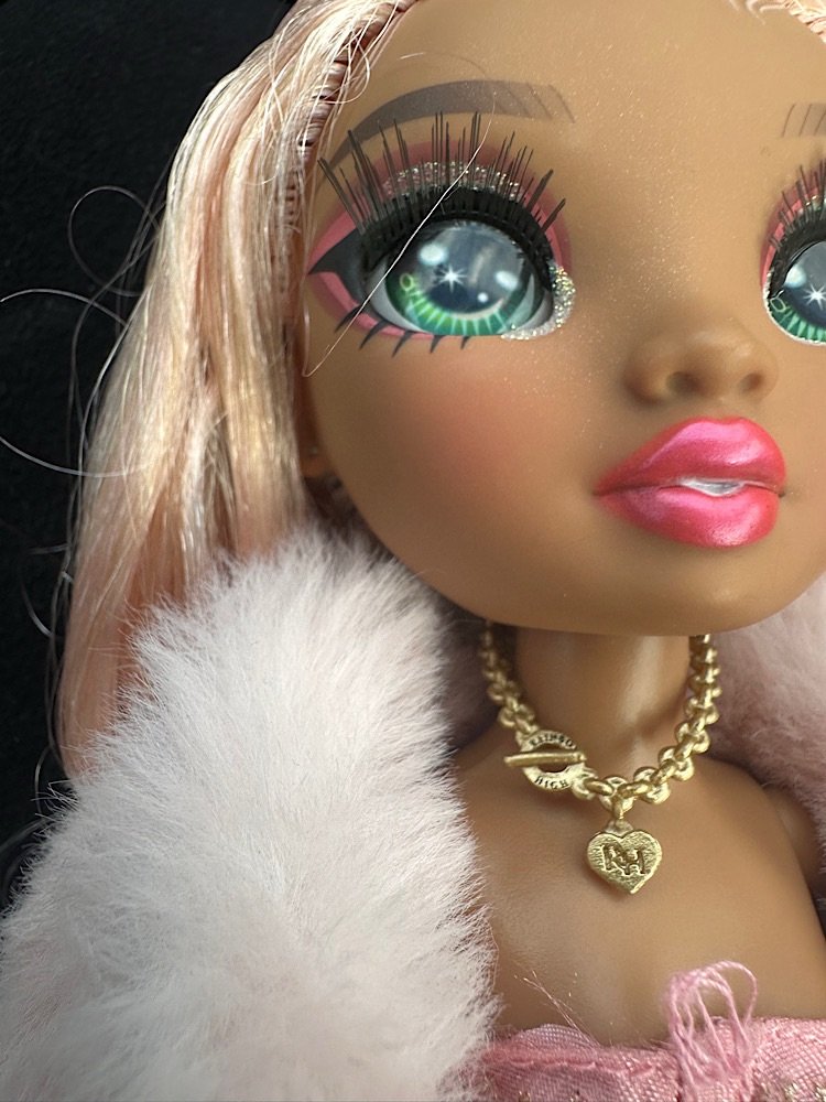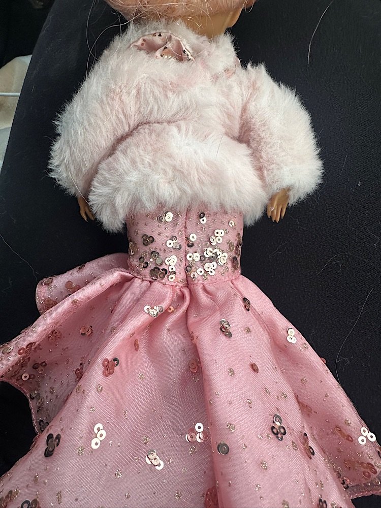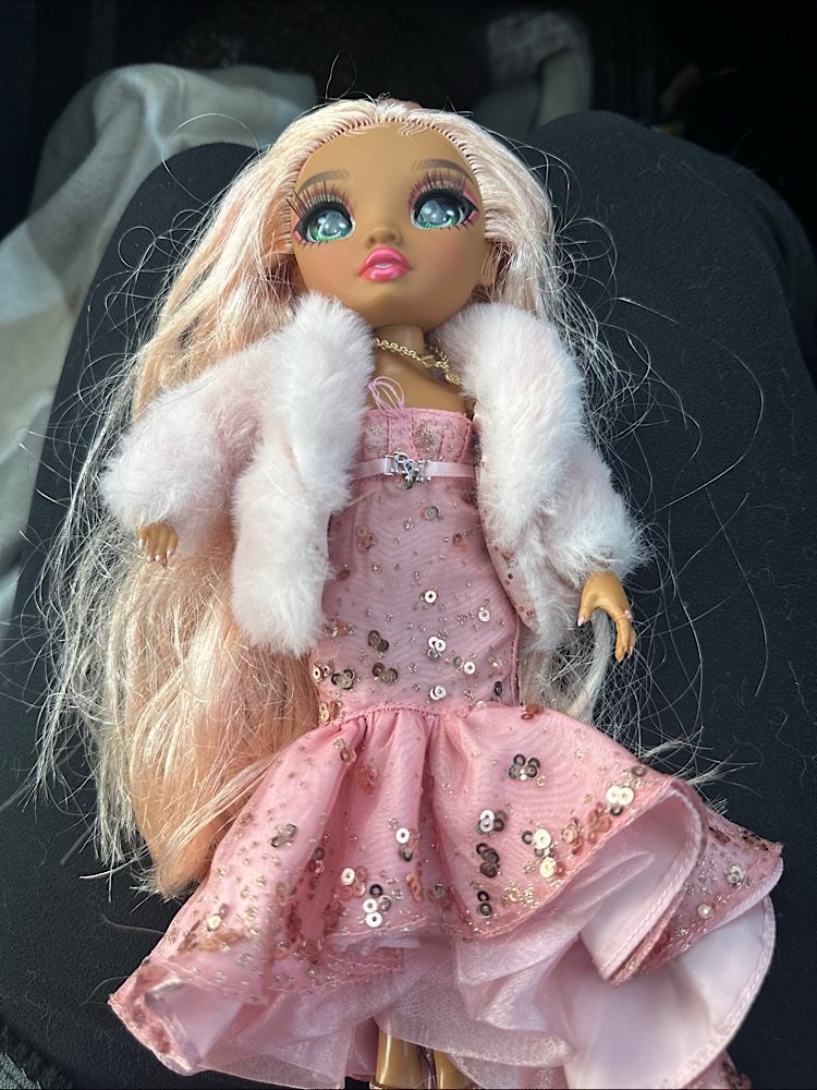 Rainbow High Sabrina St. Cloud fashion doll wearing pink sequin gown and faux fur jacket. Collector fashion doll.